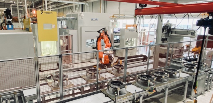 該焊接裝配線實現(xiàn)了差殼齒輪激光焊接生產(chǎn)自動化,不僅減輕了差速器重量、降低材料消耗和生產(chǎn)成本,提高了生產(chǎn)效率;還節(jié)省了勞動力,全線生產(chǎn)人員只需2人(上下料1人,配料1人),助力汽車制造企業(yè)降本增效。