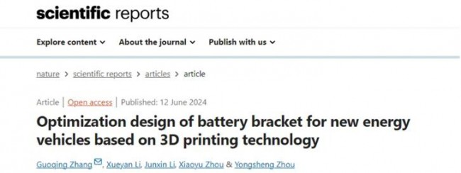 周口師范學(xué)院機械與電氣工程學(xué)院的張國慶博士在Scientific reports期刊發(fā)表了《Optimization design of battery bracket for new energy vehicles based on 3D printing technology》,在3D打印技術(shù)助力下,探究了新能源電動汽車電池組系統(tǒng)的性能強化潛能。