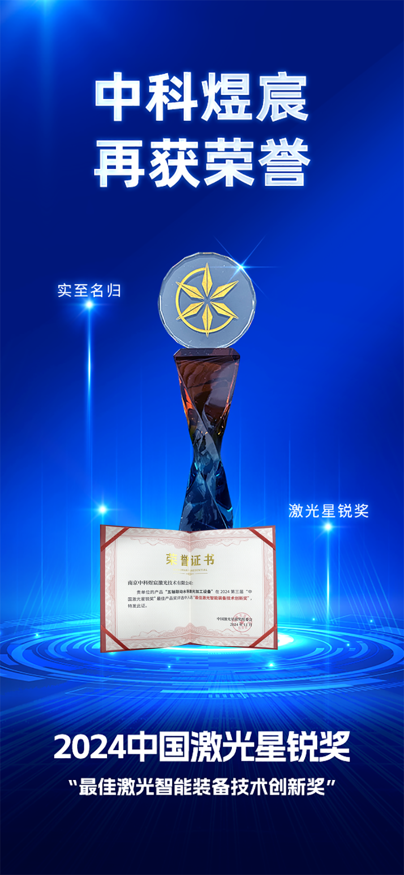 11月28日,2024中國激光星銳獎(jiǎng)新鮮出爐,中科煜宸“五軸聯(lián)動水導(dǎo)激光加工設(shè)備”榮獲“最佳激光智能裝備技術(shù)創(chuàng)新獎(jiǎng)”。