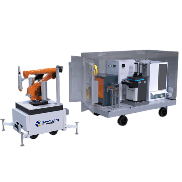 重點(diǎn)面向復(fù)雜現(xiàn)場條件、港口條件、艦載條件等多工況條件下的激光修復(fù)需求開發(fā),整體結(jié)構(gòu)采用模塊化設(shè)計,吊裝、運(yùn)輸方便,小巧便捷、整體設(shè)計美觀。機(jī)器人工作車體采用電動遙控控制,靈活性更強(qiáng)。