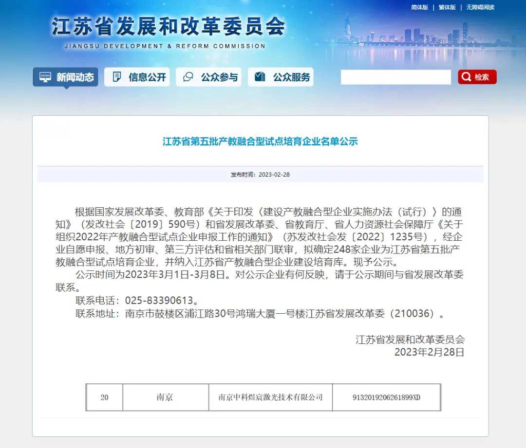 2月28日,江蘇省發(fā)展和改革委員會發(fā)布通知,公布江蘇省第五批產(chǎn)教融合型試點培育企業(yè)名單,中科煜宸成功入選,并被納入江蘇省產(chǎn)教融合型企業(yè)建設(shè)培育庫。