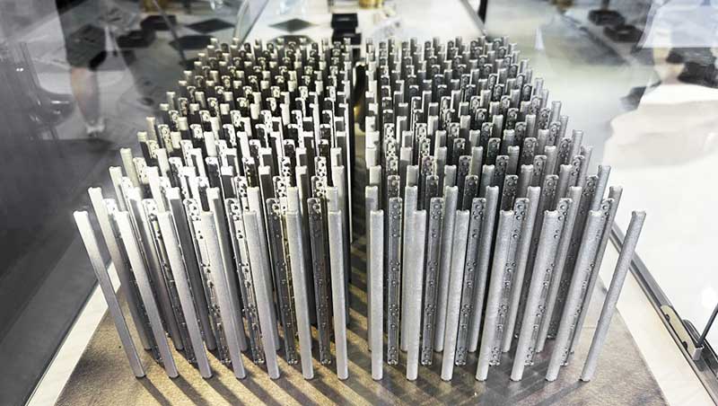 實現(xiàn)手機(jī)鉸鏈支架批量化生產(chǎn)制造,軸蓋首次采用鈦合金3D打印工藝,寬度相較于鋁合金材質(zhì)降低27%,強(qiáng)度卻提升150%,從而帶動折疊屏整體厚度和重量的下降。
