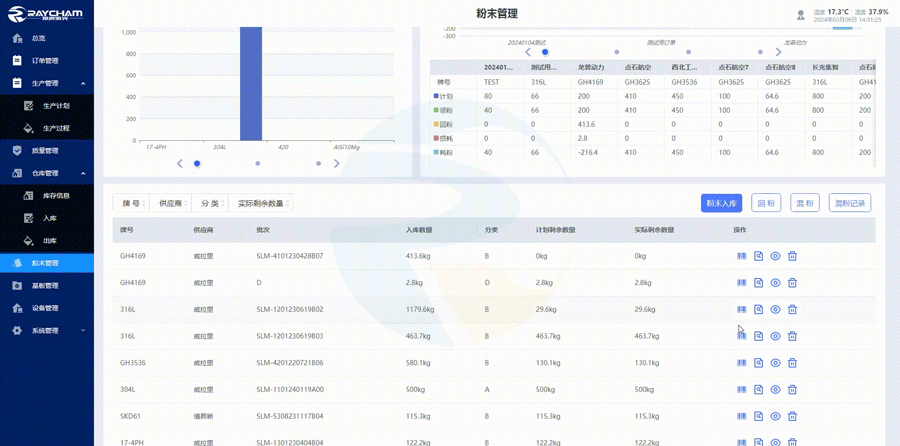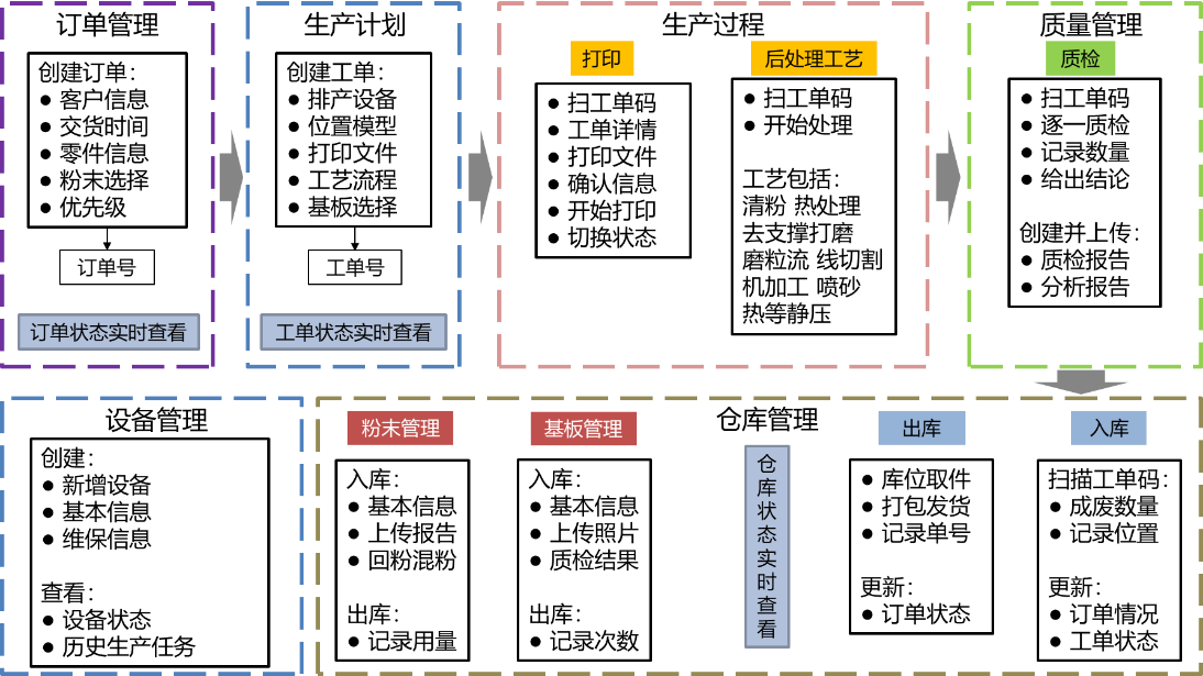 通過粉末管理模塊和基板管理模塊實(shí)現(xiàn)WMS的物料出入庫功能;